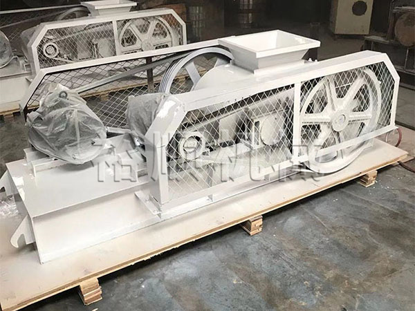 對輥破碎機的破碎結構是一對互相平行的圓柱型輥子。前輥和后輥工作相向旋轉,物料加入到喂料箱內,落在轉輥的上面,物料在輥子表面磨擦力的作用下,被扯進轉輥之間,同時受到輥軸的擠軋和磨剪,物料即開始碎裂,碎裂后的小顆粒沿著輥子旋轉的切線方向,通過兩輥軸的間隙,向機器下方拋出,超過間隙的大顆粒物料,繼續被破碎成小顆粒后排出。破碎是連續操作的,具有強制卸料的作用,可以粉碎粘濕的物料而不會堵塞。